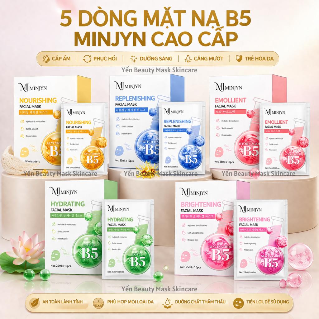 Hộp 10 miếng mặt nạ B5 MINJYN mix theo nền da giúp dưỡng ẩm, dưỡng trắng, giảm nhăn, kiềm dầu, giảm mụn, thu nhỏ lỗ chân lông to